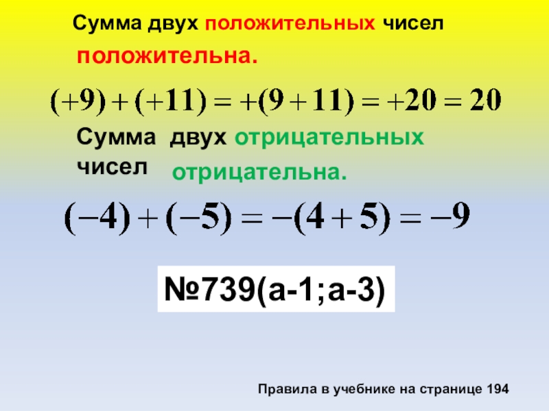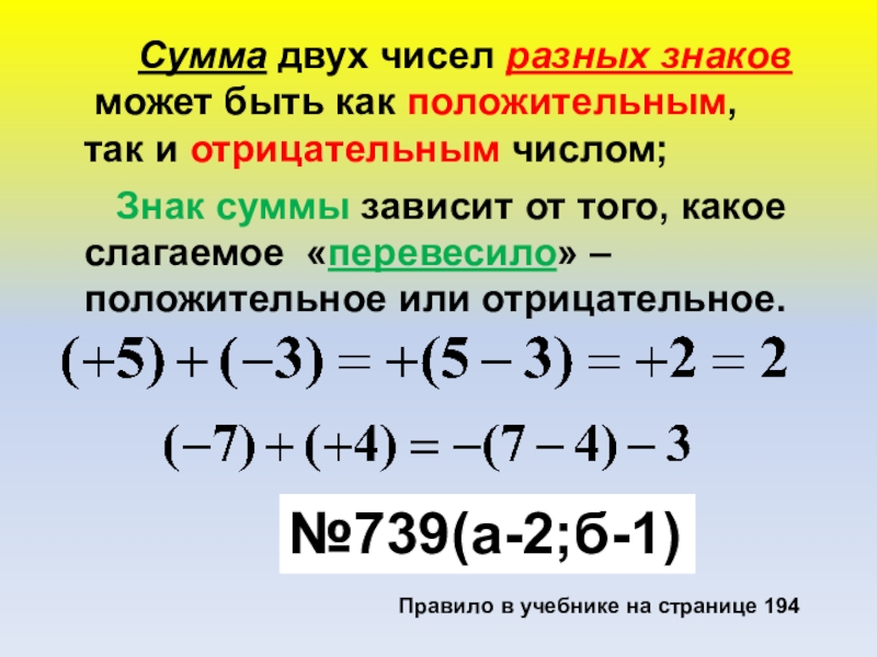 Знак суммы зависит от того, какое слагаемое «перевесило» –