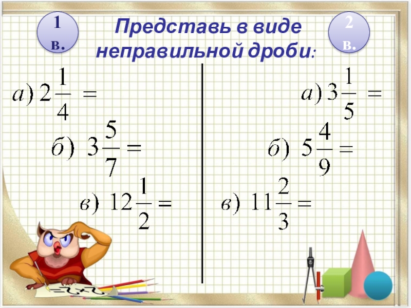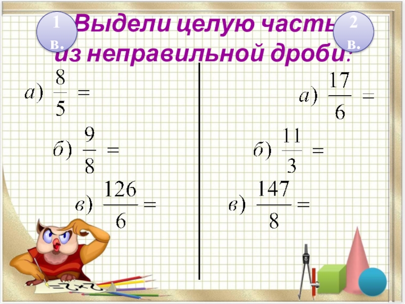Выдели целую часть  из неправильной дроби:1 в.2 в.