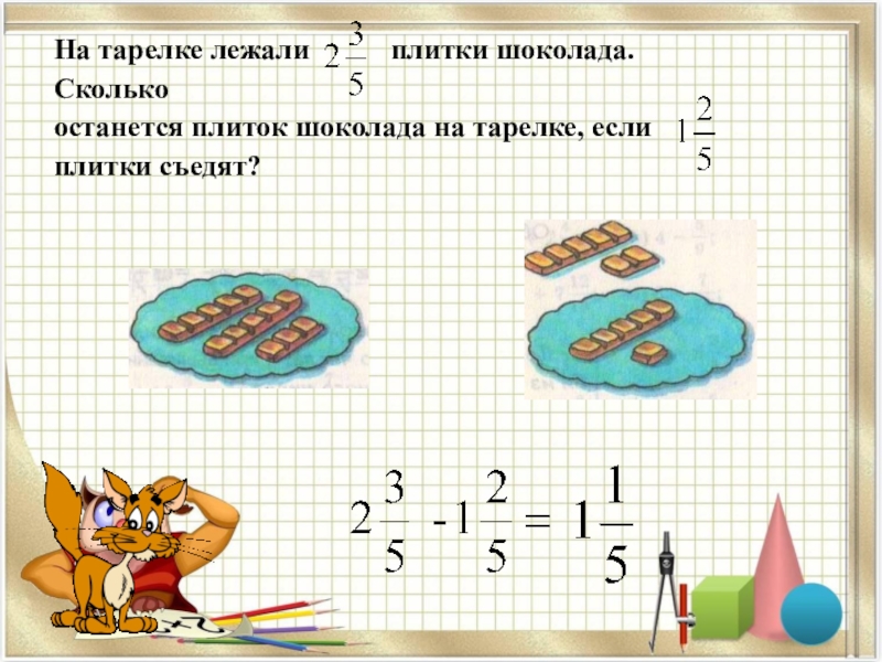 На тарелке лежали      плитки шоколада.  Сколько  останется плиток шоколада на