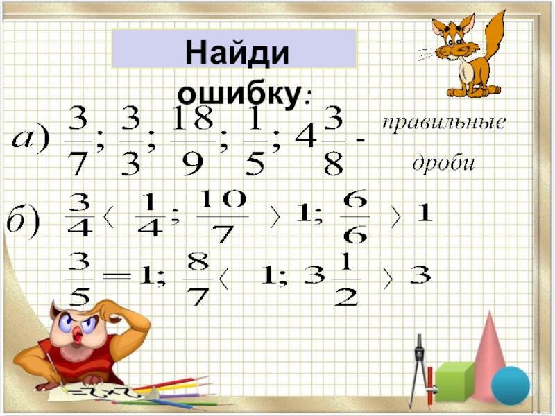 Слайд 4 Выдели целую часть из неправильной дроби:
