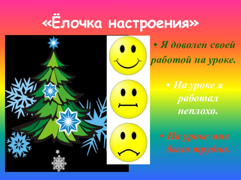 «Ёлочка настроения»Я доволен своей работой на уроке.На уроке я работал неплохо.На уроке мне было трудно.