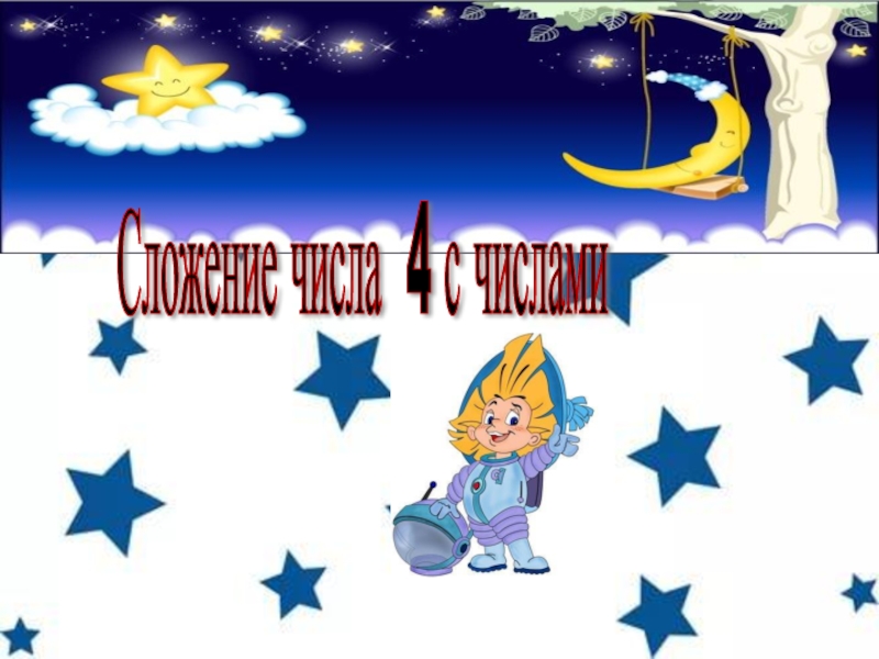 Презентация, доклад по математике на тему Сложение числа 4 с однозначными числами (1 класс)