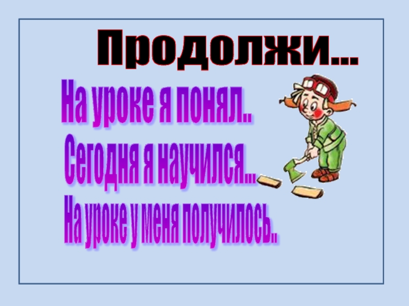 Продолжи... Сегодня я научился... На уроке я понял.. На уроке у меня получилось..