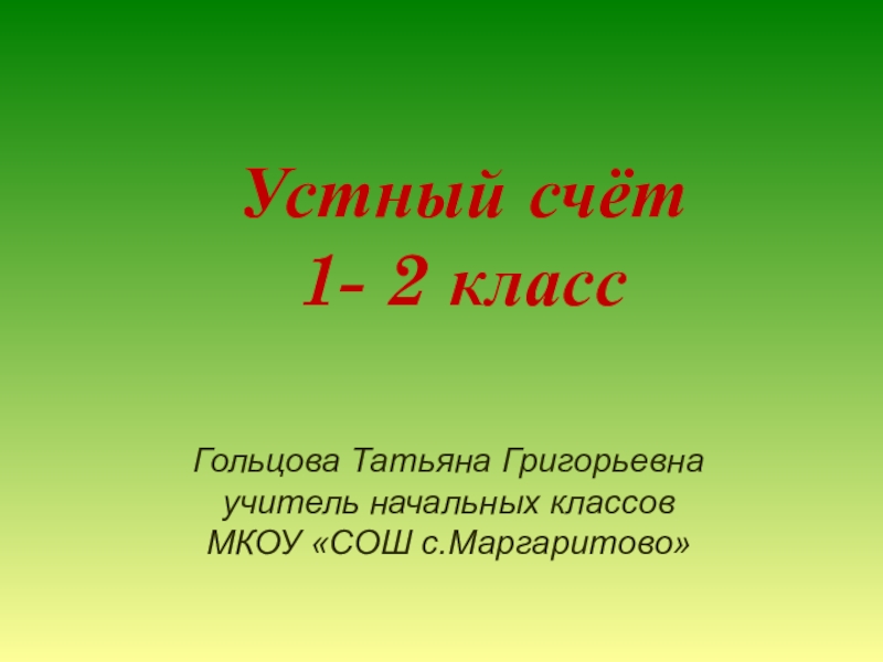 Гольцова Татьяна Григорьевнаучитель начальных классовМКОУ «СОШ с.Маргаритово»Устный счёт1- 2 класс