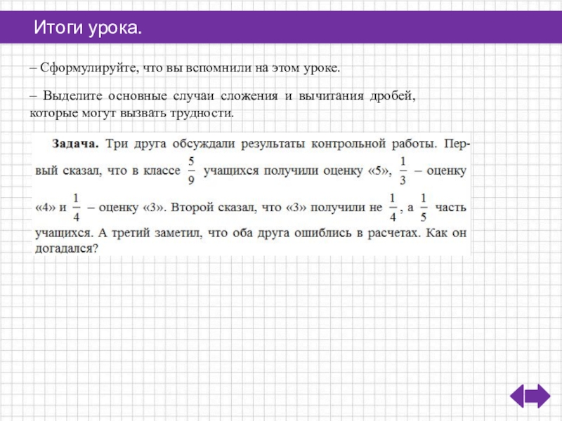 – Выделите основные случаи сложения и вычитания дробей, которые могут вызвать трудности.