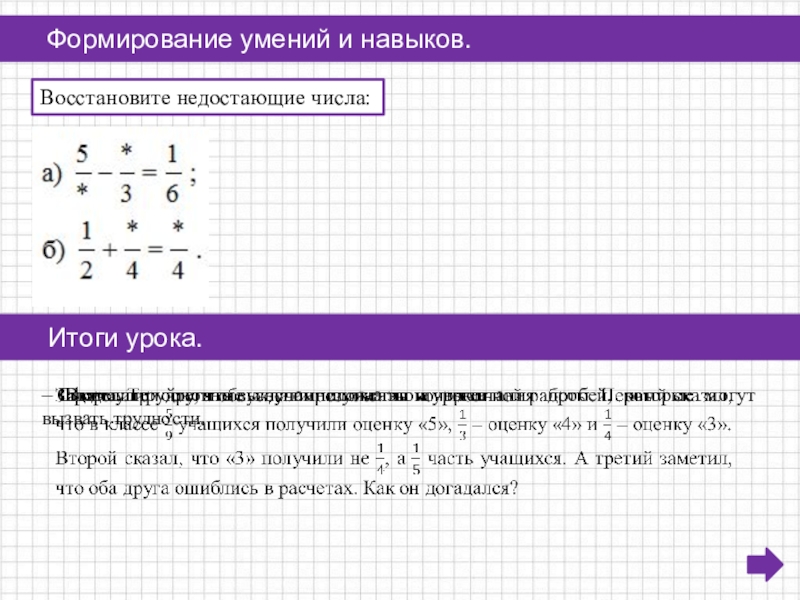 – Назовите меньшую дробь со знаменателем 11 такую, чтобы она была больше данной дроби.
