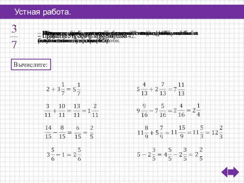– Сформулируйте правило сложения и вычитания смешанных чисел.