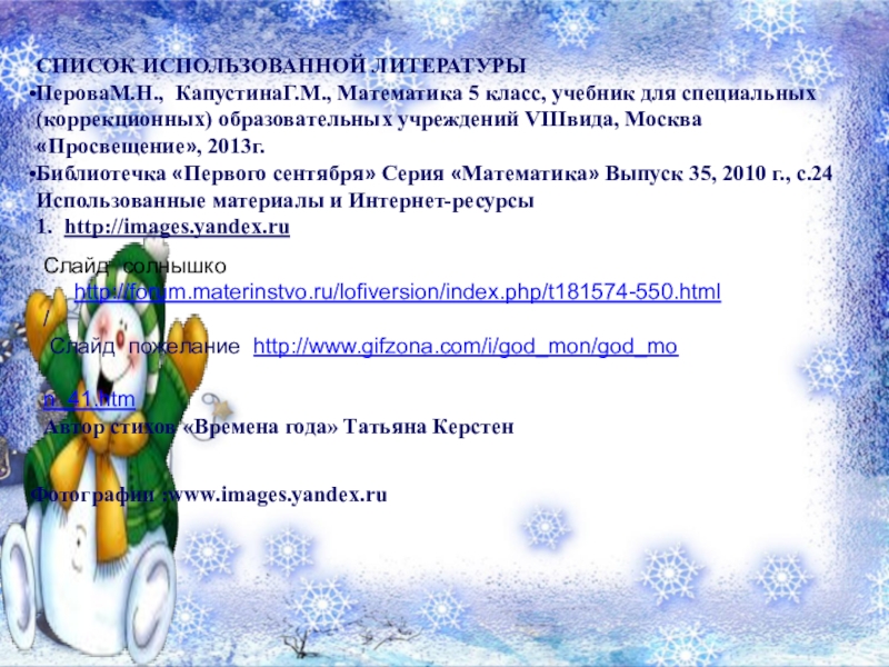 ПероваМ.Н., КапустинаГ.М., Математика 5 класс, учебник для специальных (коррекционных) образовательных учреждений VIIIвида, Москва «Просвещение», 2013г.