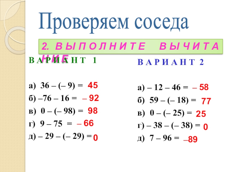 в) 0 – (– 25) =