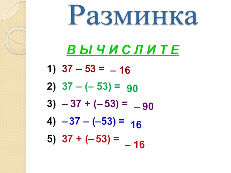 г) 0 + (- 84) =