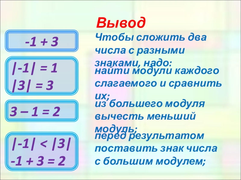 2. поставить перед полученным числом знак того слагаемого, модуль которого больше.