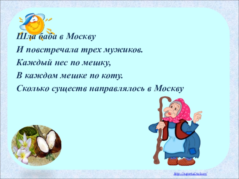 Слайд 7Шла баба в Москву