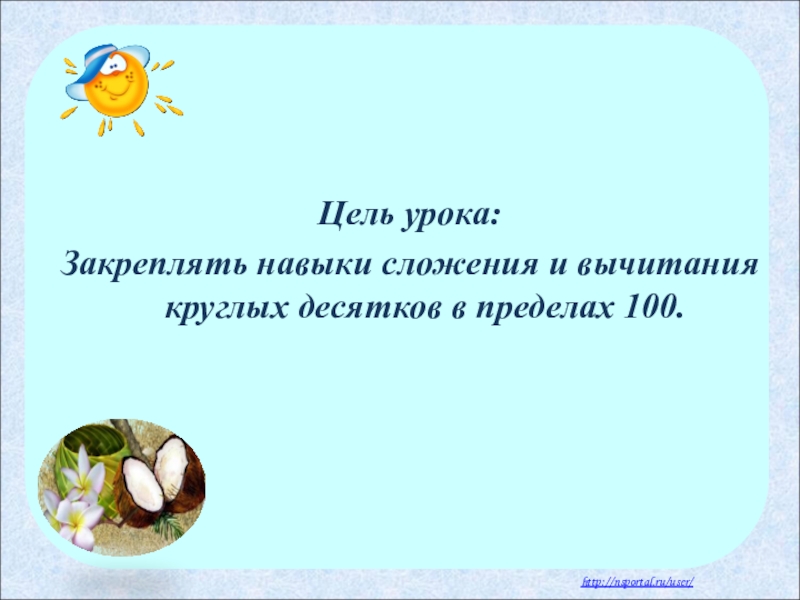 Закреплять навыки сложения и вычитания круглых десятков в пределах 100.