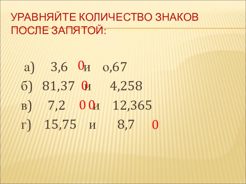 УРАВНЯЙТЕ КОЛИЧЕСТВО ЗНАКОВ ПОСЛЕ ЗАПЯТОЙ: