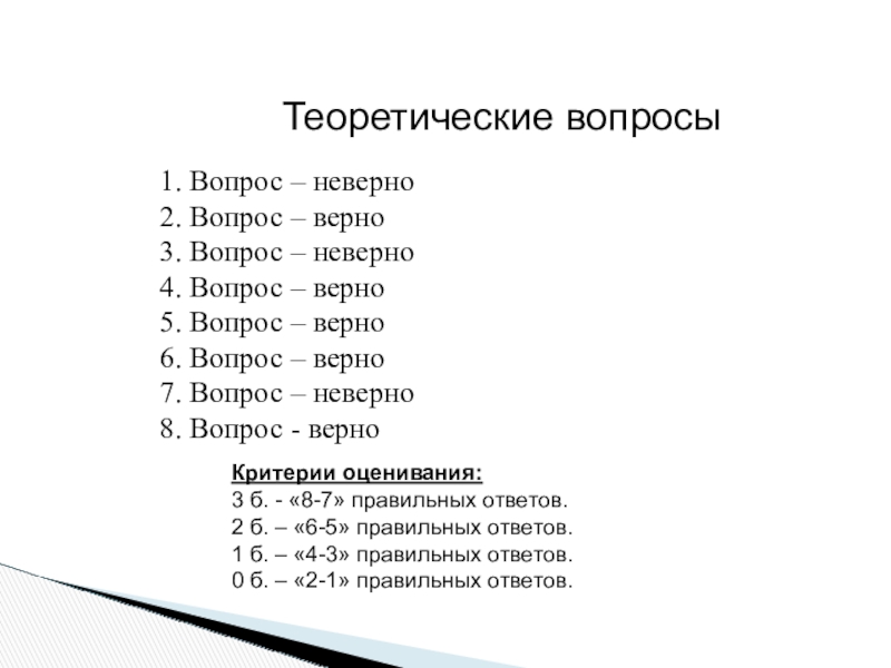 3 б. - «8-7» правильных ответов.