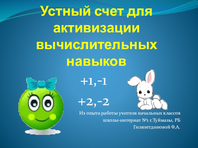 Устный счет для активизации вычислительных навыков+1,-1+2,-2Из опыта работы учителя начальных классов школы-интернат №1 г.Туймазы, РБГилязетдиновой Ф.А.