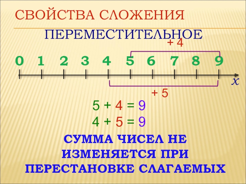 СУММА ЧИСЕЛ НЕ ИЗМЕНЯЕТСЯ ПРИ ПЕРЕСТАНОВКЕ СЛАГАЕМЫХ