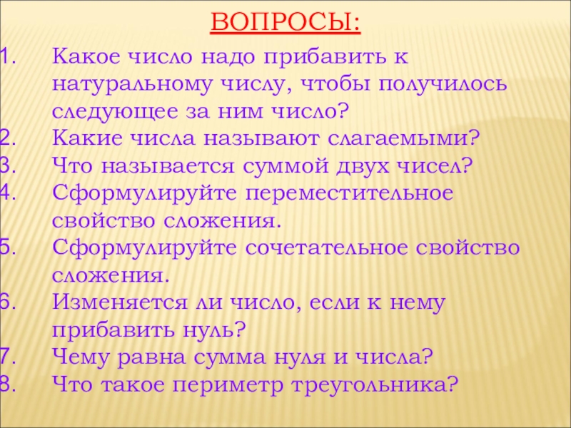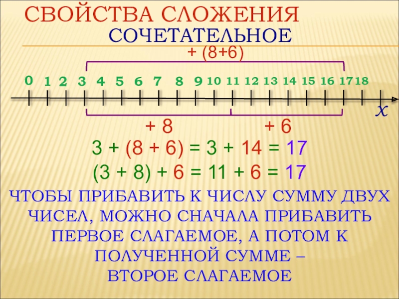 ЧТОБЫ ПРИБАВИТЬ К ЧИСЛУ СУММУ ДВУХ ЧИСЕЛ, МОЖНО СНАЧАЛА ПРИБАВИТЬ ПЕРВОЕ СЛАГАЕМОЕ, А ПОТОМ К ПОЛУЧЕННОЙ СУММЕ –