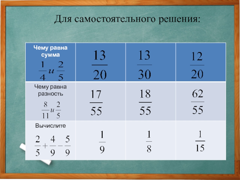 Презентация, доклад по математике на тему Сложение и вычитание дробей с разными знаменателями
