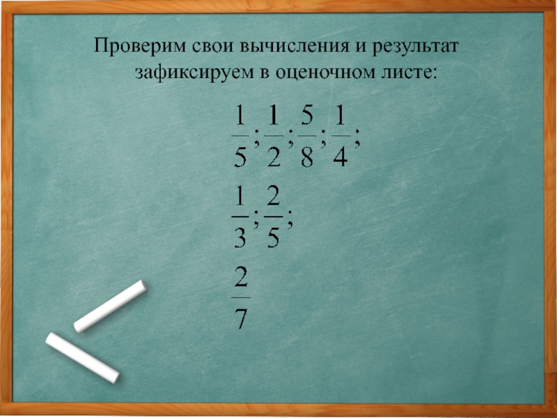 Слайд 4Проверим свои вычисления и результат зафиксируем в оценочном листе: