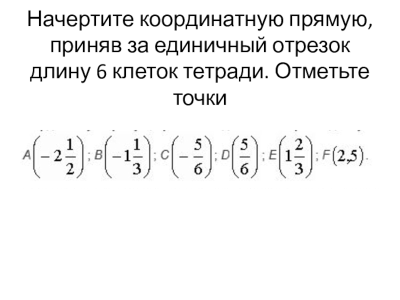 Слайд 5Начертите координатную прямую, приняв за единичный отрезок длину 6 клеток тетради.