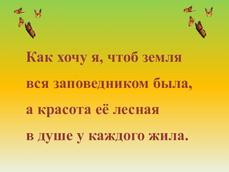 Как хочу я, чтоб землявся заповедником была, а красота её лесная в душе у каждого жила.