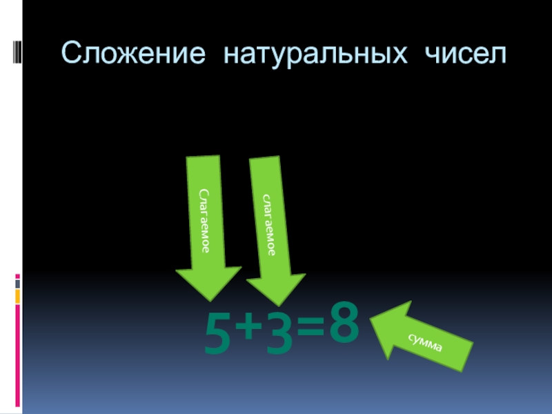 Сложение натуральных чисел5+3=8Слагаемоеслагаемоесумма