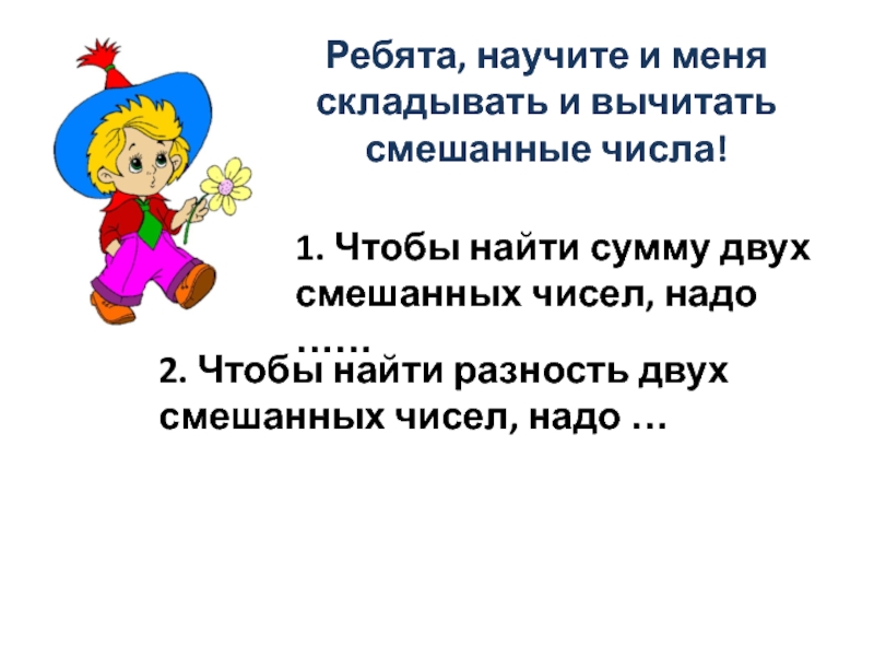 2. Чтобы найти разность двух смешанных чисел, надо …