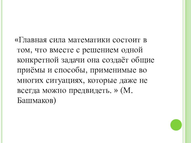 одной конкретной задачи она создаёт общие приёмы и способы, применимые во многих ситуациях, которые даже не всегда можно предвидеть. » (М. Башмаков)