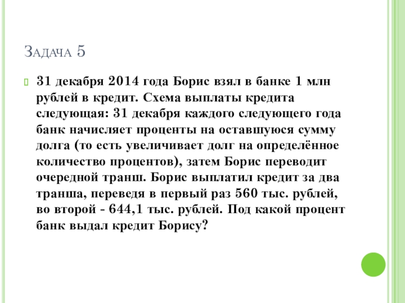 31 декабря 2014 года Борис взял в банке 1 млн