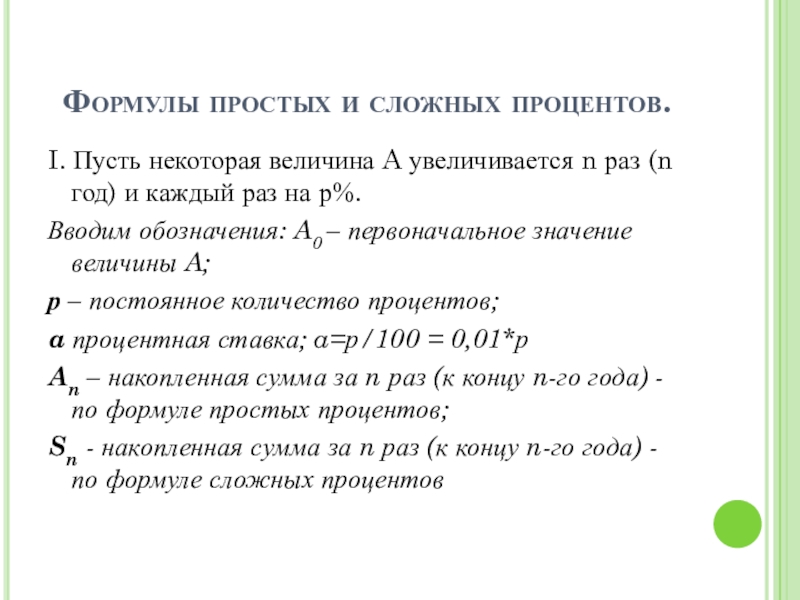 Слайд 6Формулы простых и сложных процентов.
