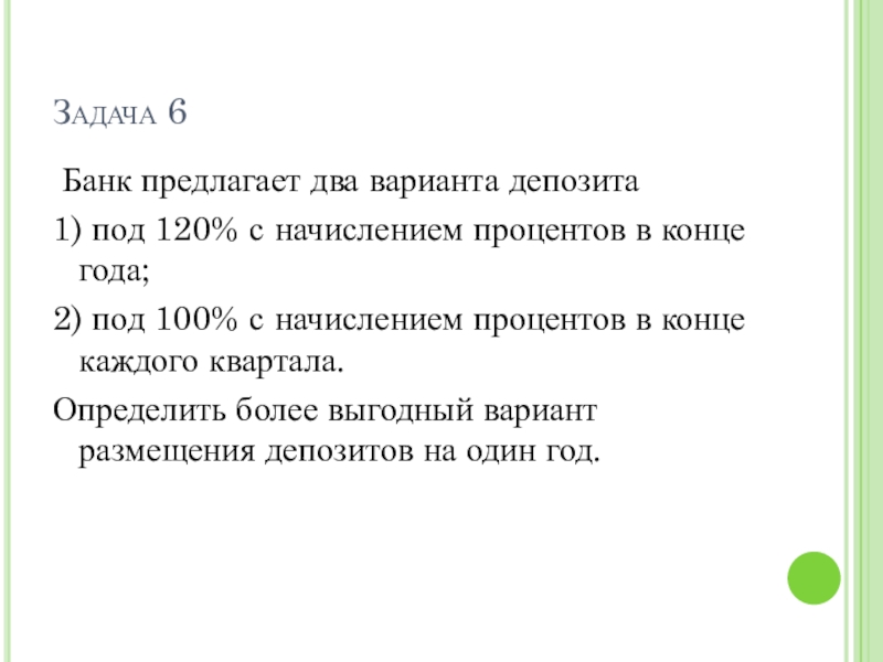 Определить более выгодный вариант размещения депозитов на один год.