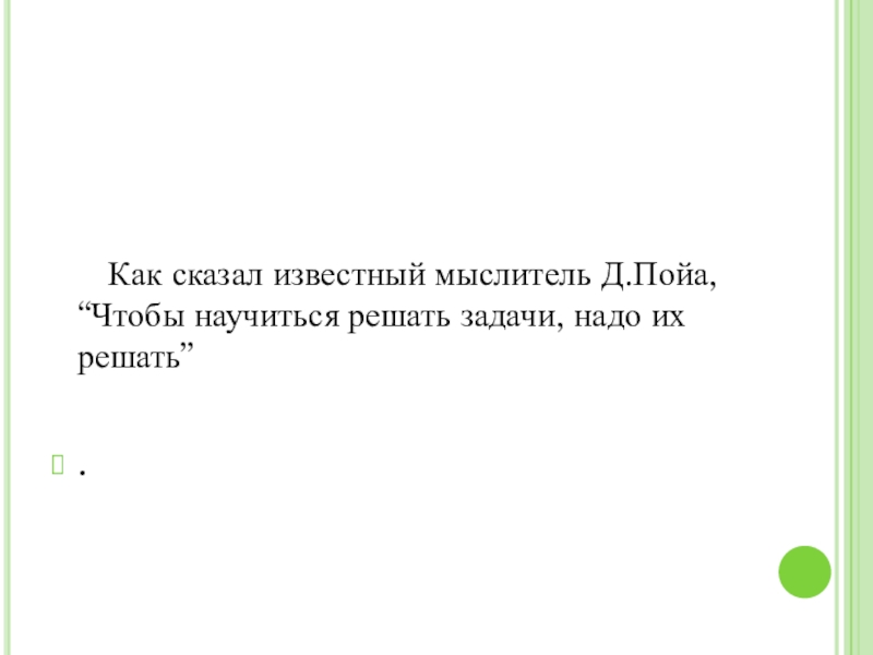Как сказал известный мыслитель Д.Пойа, “Чтобы научиться решать