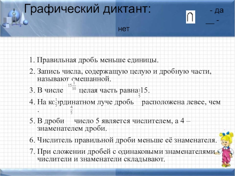 5. В дроби число 5 является числителем, а 4 – знаменателем дроби.