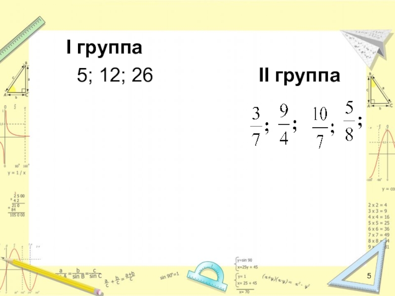 Разбейте числа на две группы:I - натуральные числа;II - дробные числа  	5;