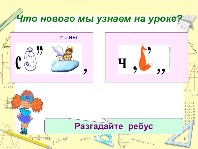 Что нового мы узнаем на уроке?Разгадайте ребусГ = НЫ, , ,