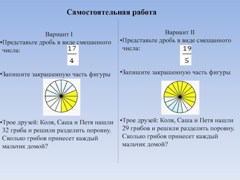 Трое друзей: Коля, Саша и Петя нашли 29 грибов и решили разделить поровну. Сколько грибов принесет каждый мальчик домой?