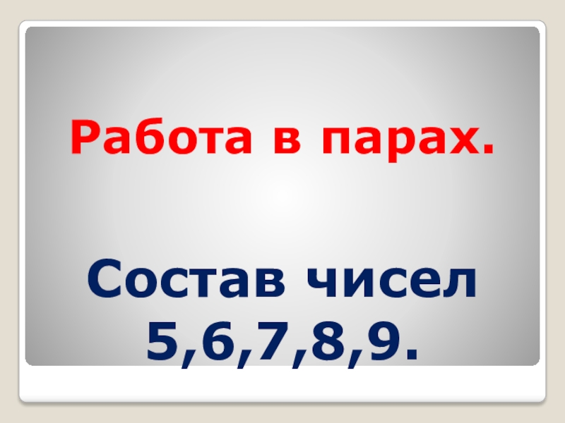 Слайд 6Работа в парах. Состав чисел 5,6,7,8,9.