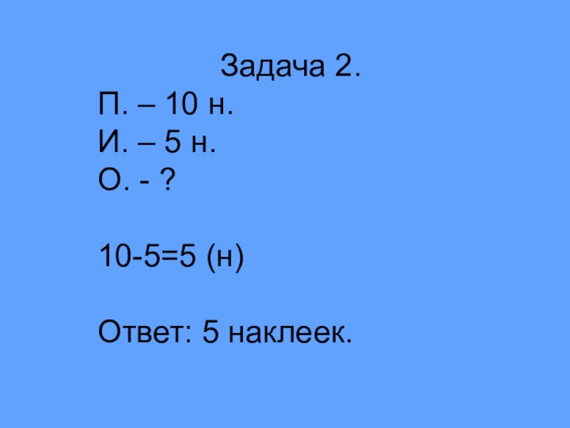 Задача 2.П. – 10 н.И. – 5 н.О. - ?10-5=5