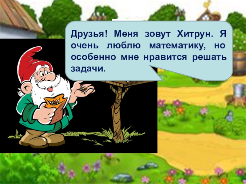 Друзья! Меня зовут Хитрун. Я очень люблю математику, но особенно мне нравится решать задачи.