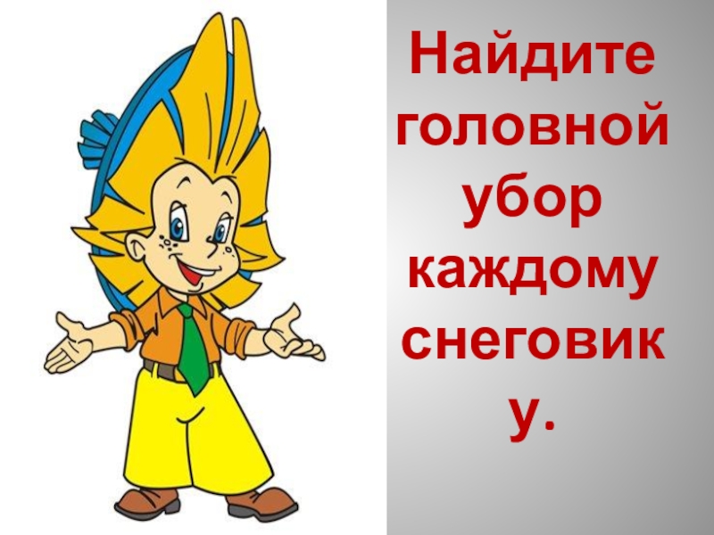 Слайд 6Найдите головной убор каждому снеговику.