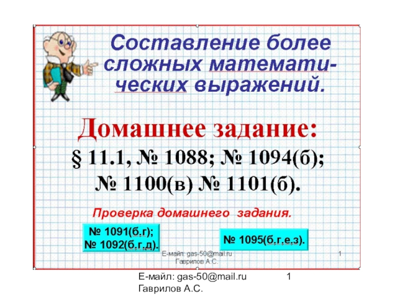 Слайд 1Е-майл: gas-50@mail.ru Гаврилов А.С.