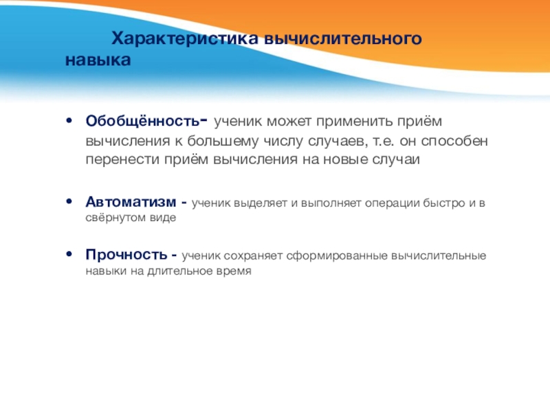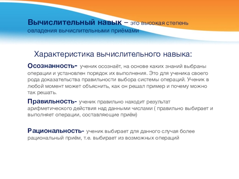 Слайд 6Вычислительный навык – это высокая степень овладения вычислительными приёмами