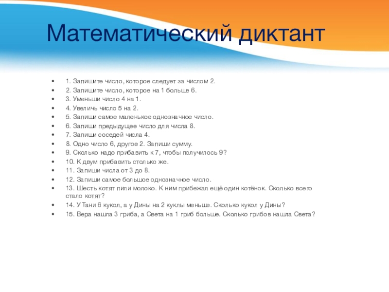 Разработать разнообразные виды упражнений для организации устного счёта на уроках математике;