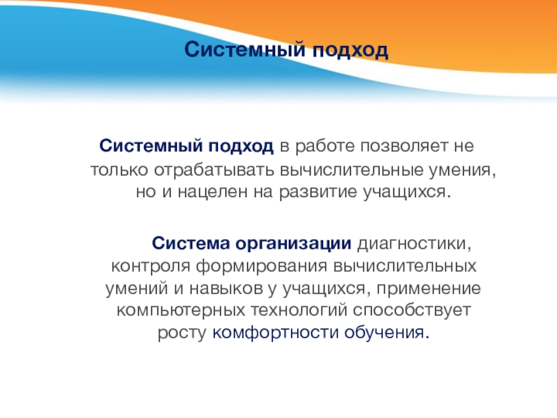 Система организации диагностики, контроля формирования вычислительных умений и навыков у учащихся, применение компьютерных технологий способствует росту комфортности обучения.