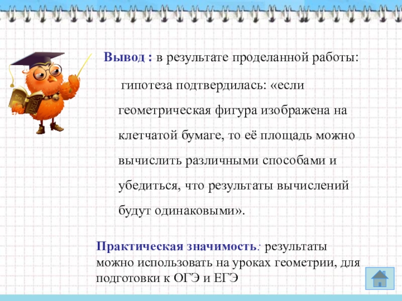 Практическая значимость: результаты можно использовать на уроках геометрии, для подготовки к ОГЭ и ЕГЭ