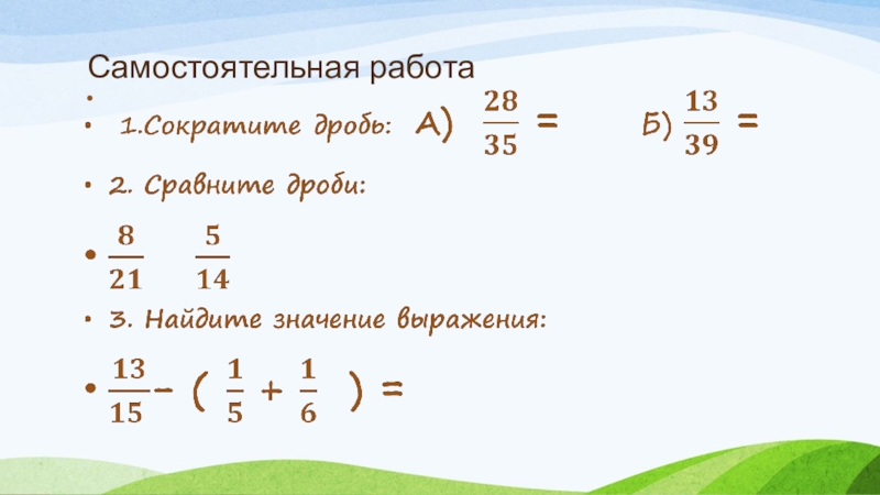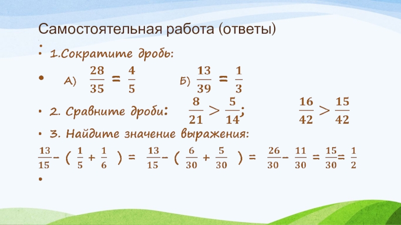 Презентация, доклад по математике на тему Сравнение, сложение и вычитание дробей (6 класс)