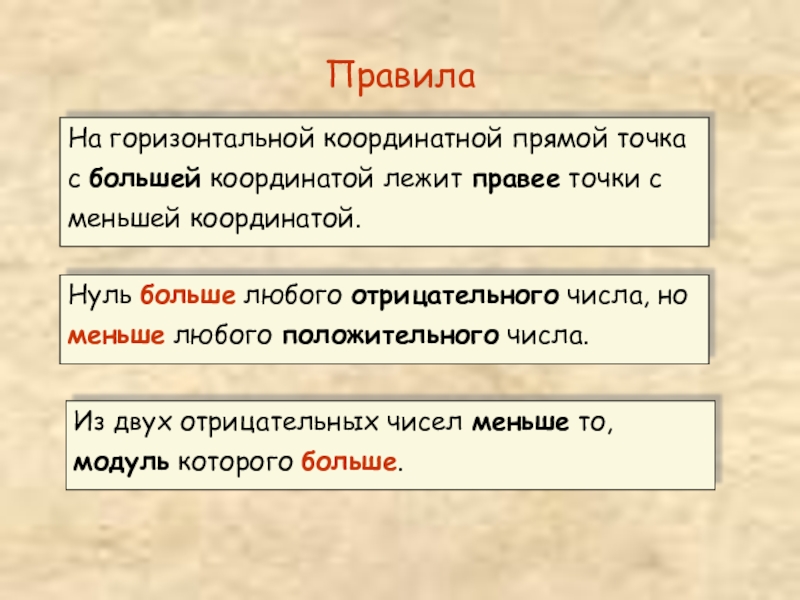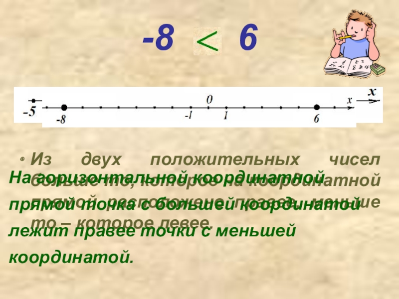На горизонтальной координатной прямой точка с большей координатой лежит правее точки с меньшей координатой.