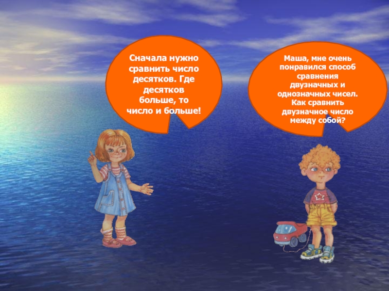 Сначала нужно сравнить число десятков. Где десятков больше, то число и больше!