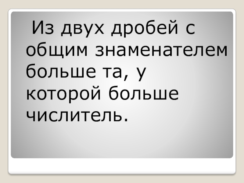 Слайд 4 Из двух дробей с общим знаменателем больше та, у которой